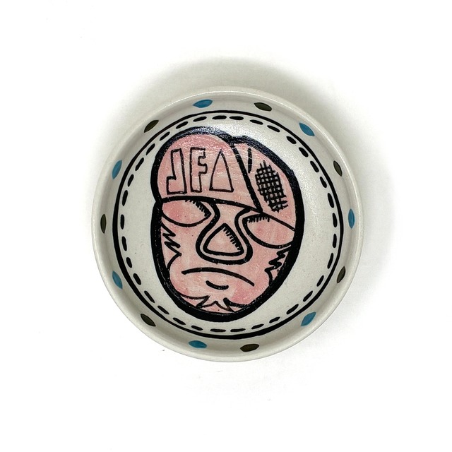 作家の鋭い視点と、沖縄の熱量が宿る一期一会の「作品」です。 「やちむん」の概念を鮮やかに裏切る、mano619・田村聡士氏の真骨頂。 北窯・宮城正享氏に師事し、伝統の真髄を身体に刻んだ彼が、自らのバックボーンであるストリートや音楽の感性を解放して描く「ルチャ・リブレ(メキシカン・プロレス)」。 信楽土と沖縄の土を独自にブレンドした力強い生地に、エッジの効いたグラフィックが重なることで、民藝の健やかさと現代的な毒気が共存する唯一無二の佇まいが生まれました。 単なる「絵付け皿」に留まらない、土の質感と線が火の中で化学反応を起こしたような、荒々しくも愛嬌のある表情。食卓に置いた瞬間、その場の空気を一変させる圧倒的な個性を放ちます。あじま舎がその「確信犯的な遊び心」に惹かれ、選び抜いた一点です。 SPEC 作家:田村聡士(mano619) 産地:沖縄県 サイズ:径 約12cm / 高さ 約2cm 特徴:ルチャの絵付けが特徴的な器です。 [International Shipping] We deliver this authentic Okinawan piece worldwide from Osaka via EMS/DHL. Each item is unique and handcrafted by the artist. ※海外発送対応。世界中へお届けします。 ■ ご購入の前に(一期一会の個体差について) 当店の作品はすべて作家による手仕事です。同じ形でも、大きさ、色合い、歪み、柄の入り方、窯傷、小穴などに個体差がございます。これらは手仕事ならではの「景色」であり、世界に二つとない一点ものの魅力です。 ※在庫が複数ある場合、お届けする作品が画像と異なる場合がございます。個別の指定は承れませんので、一期一会の出逢いをお楽しみください。 ■ お取り扱い上の注意 食洗機・浸け置き: 破損やシミ、ひび割れの原因となるため、おすすめいたしません。 返品・交換: 検品済みの作品をお届けしております。お客様のご都合(イメージ違い等)による返品・交換は承りかねますので、熟慮の上お求めください。 在庫: 店頭でも販売しているため、タイミングにより在庫切れとなる場合がございます。 ■ For International Customers Please note that each piece is handcrafted and unique. Subtle variations in color, shape, and texture are part of the artistic value. Returns and exchanges are not accepted. We use recycled materials for packaging to ensure safe and sustainable delivery.