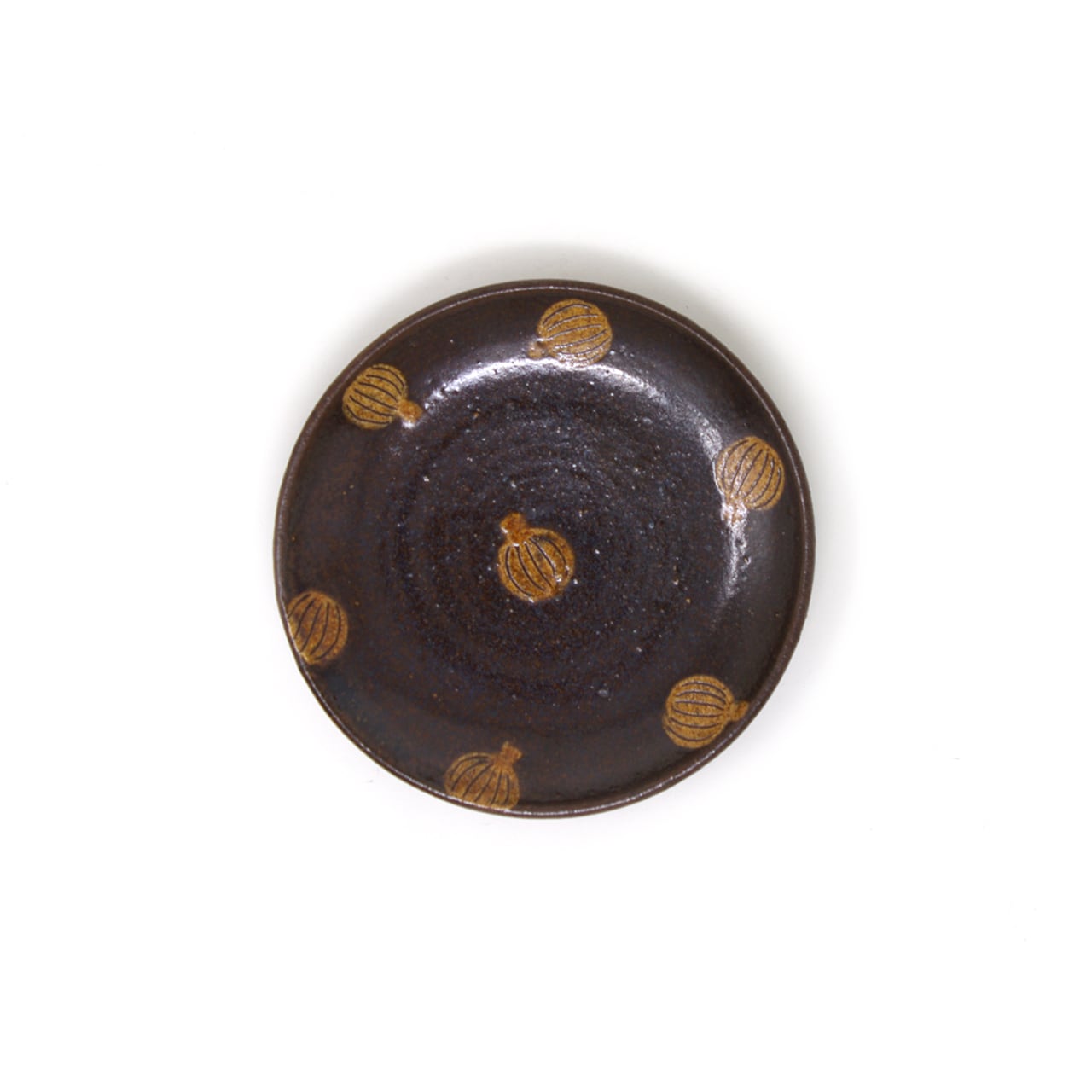 とてもシンプルなプレートに描かれたのは、沖縄に自生する月桃。その愛らしい実の模様は、島の豊かな自然への敬意と、日々の暮らしに安らぎを添える願いが込められています。落ち着いた色合いの器に、手描きで施された月桃の実は素朴ながらも美しいアクセントです。