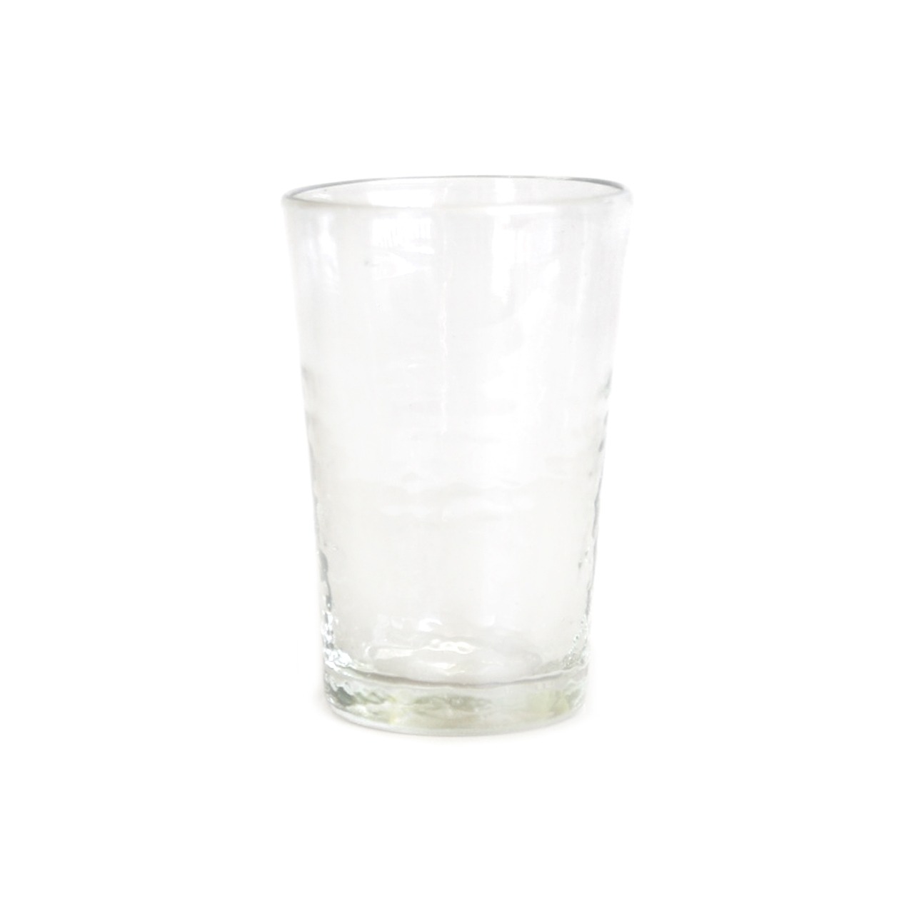工房で使用しているすべてのガラス材料は、廃瓶を集め、窯で溶かし、宙吹きから生まれる、工業製品には決して出せない風合いや重みを持ちます。こちらのノーマルグラスは名前の通り、まさにノーマル!シンプルイズザベストなグラス。とてもシンプルなのですが、手に持った時の重量感や口当たりの良さから、リピート率がとても高くオススメです。高さが小・中・大の三種類から選べるのもポイント。